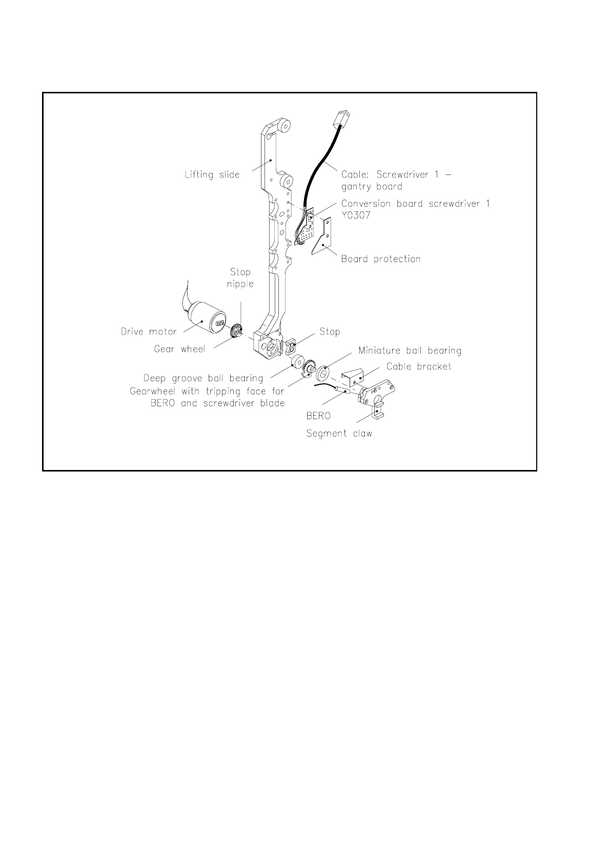 The bero cable runs in the recess in the lifting slide to the screwdriver 1 conversion board and from there is