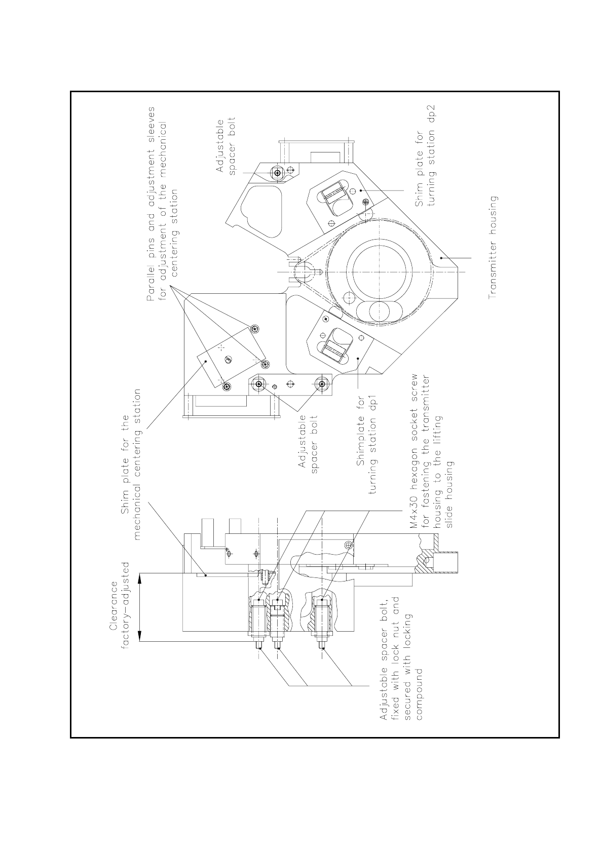 Fig. 9.6.2 Adjustment of the encoder housing at the lifting slide housing
