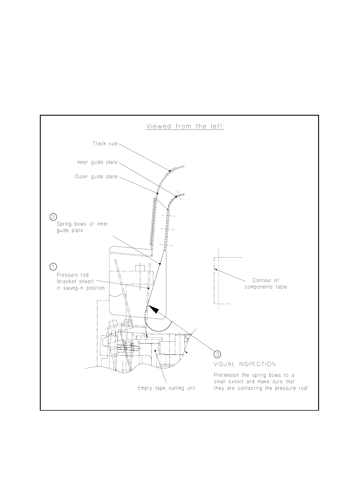 Fig. 7.6.8 Aligning the empty tape channel to the pressure rod when refitting