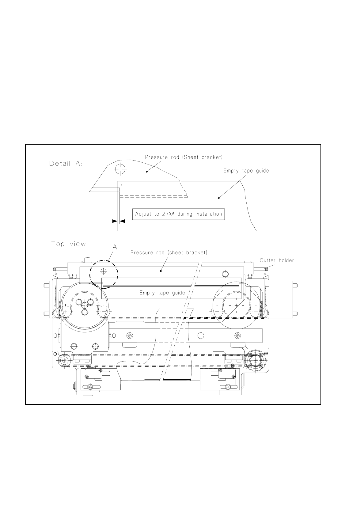 down into the empty tape channel: the pressure rod - and thus the tape cutting unit - must run parallel
