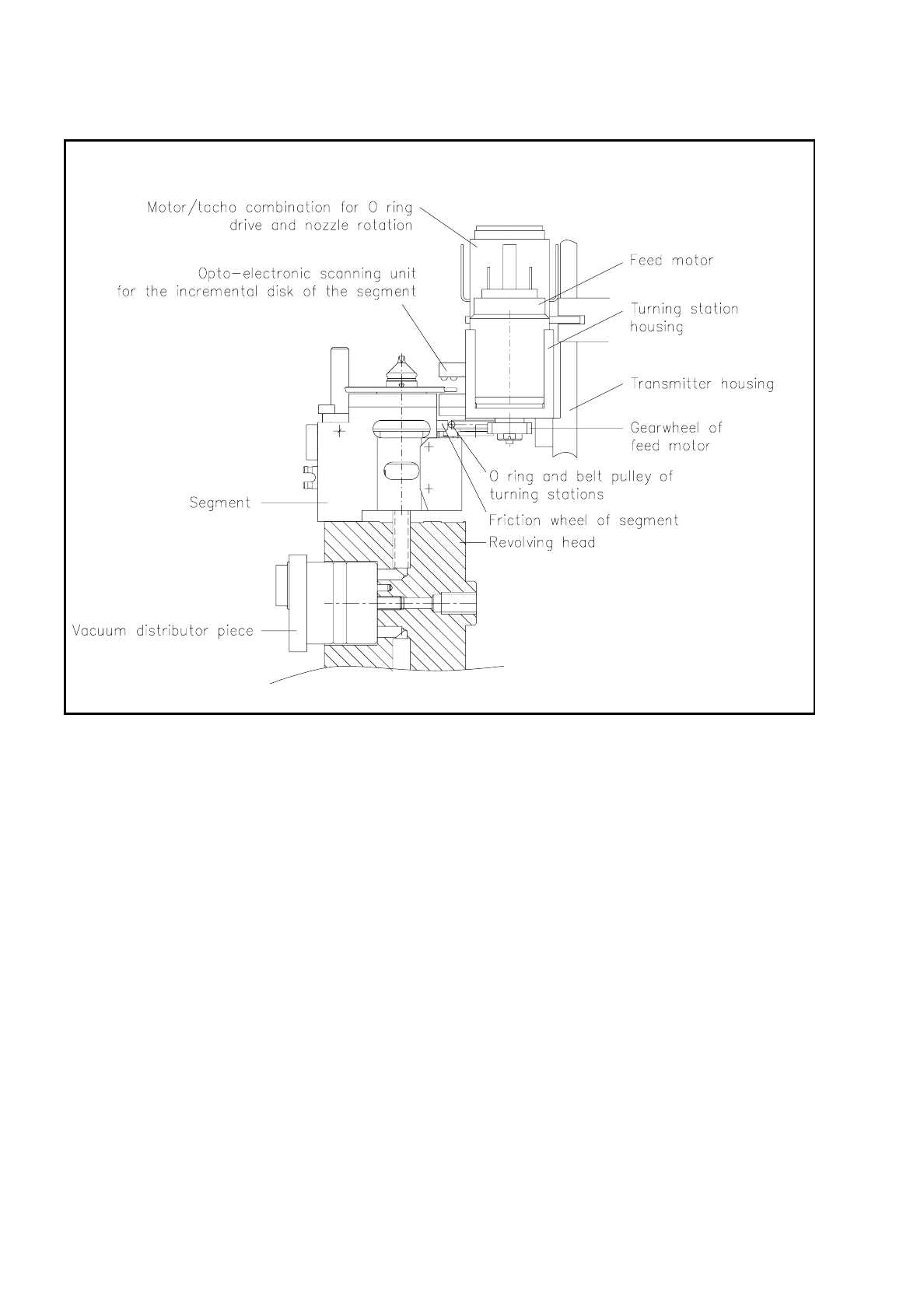 The incremental disk of the segment is scanned by the opto-electrical scanning unit of the turning station.