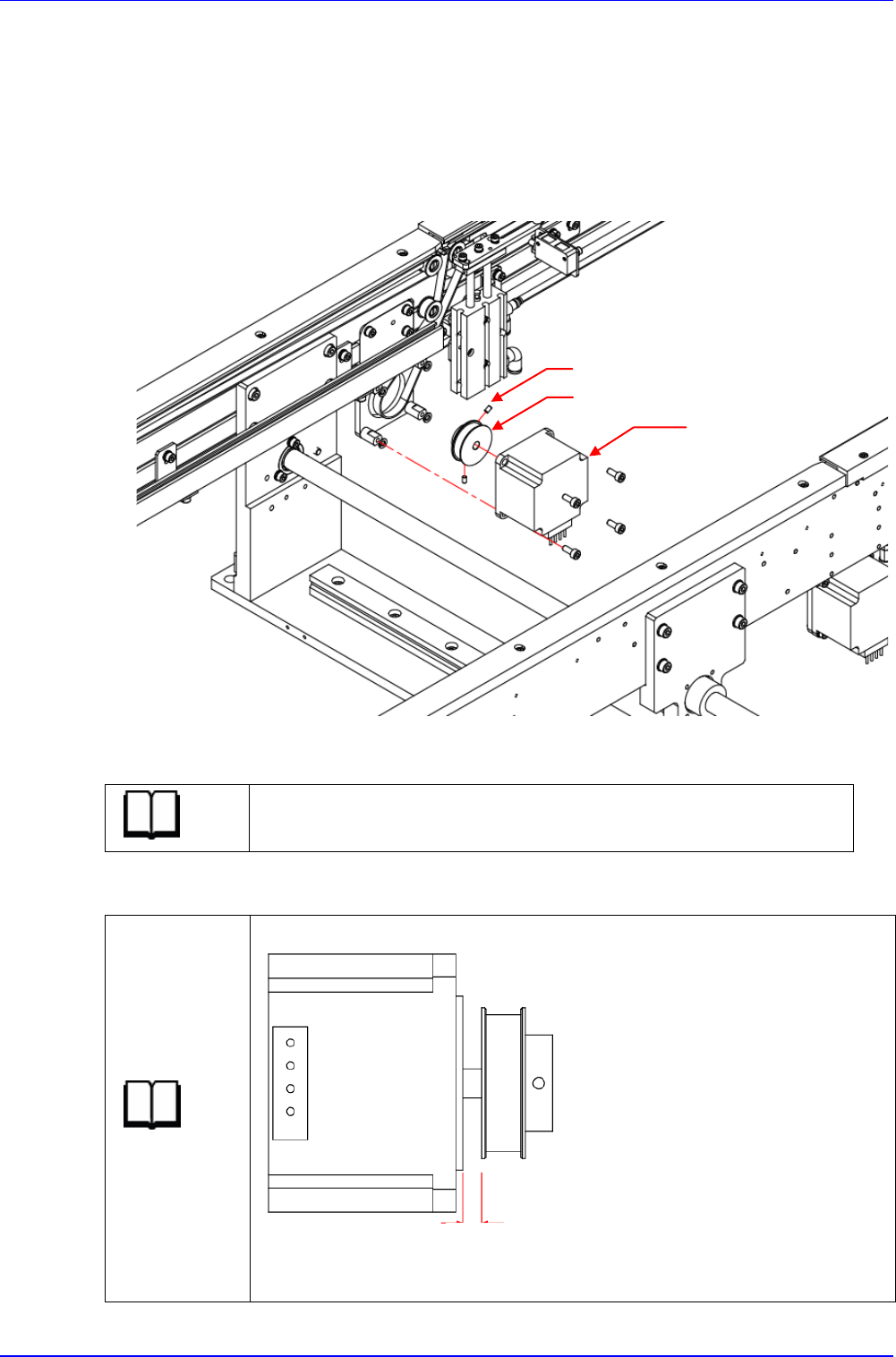 Conveyo r 13 5.3.3. 入出口 PCB 移送用 Motor 替换次序 1. 操作示教框把 X Fr ame 移动到后面 . 2. 请正常关闭 PC 后,关 闭设备前面的 Ma in Sw itch . 3. 请分离相应的电动机电 缆 . 4. 用扳手拧开固定 马达的固定螺丝 后从 br acket 中分 离马达,然后 拧开 Pul le y 的 Set S cre w 后 分离马达进行更换 . 5. 更换新 Mot or…