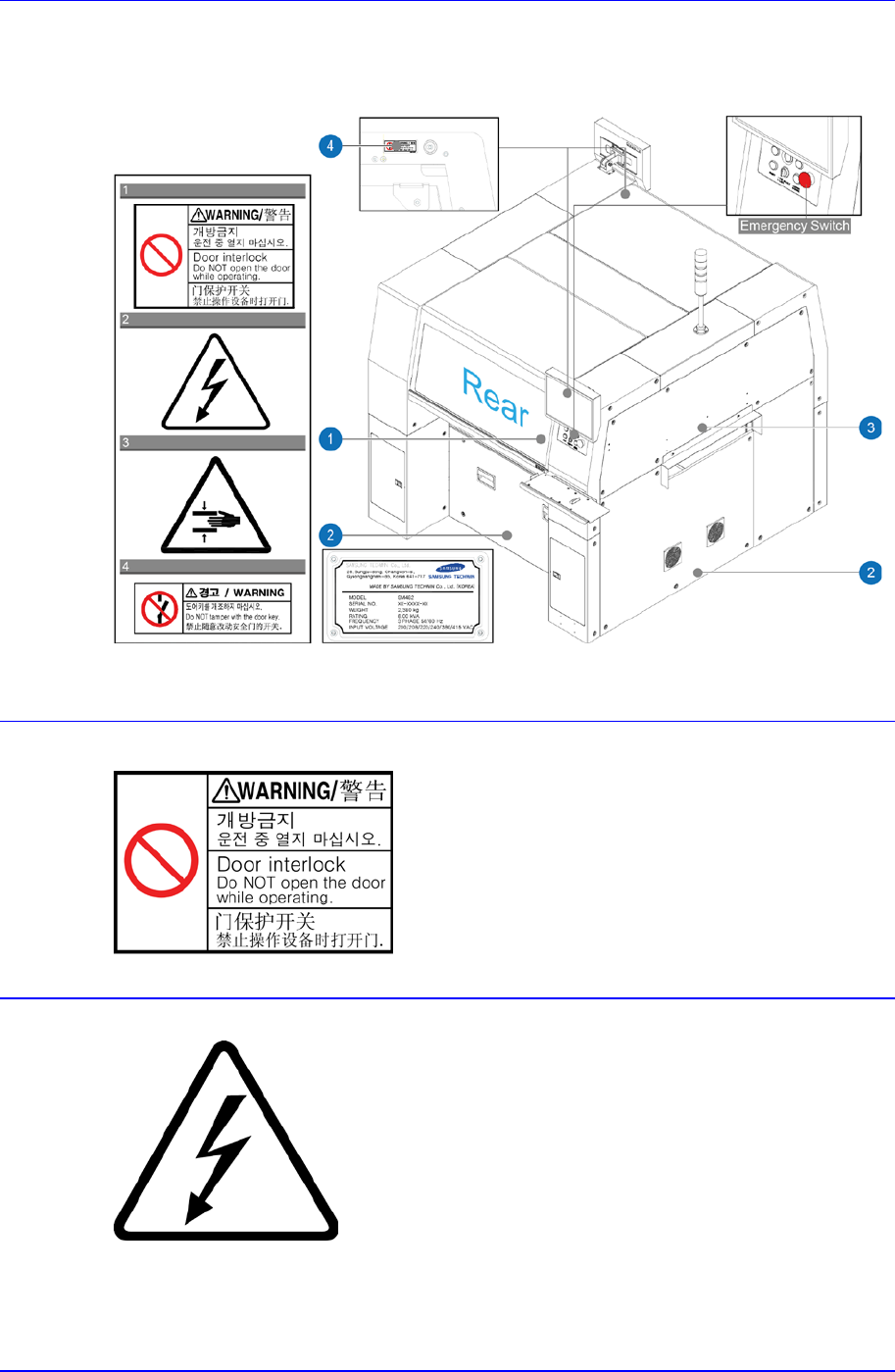 如下图所示,设备在各指定的位置上贴有标签。应按照各标签上的指令安全操作设