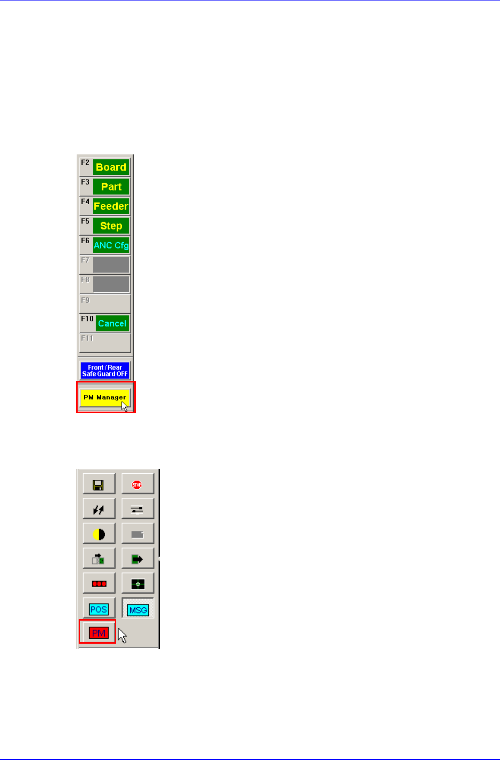 Advanced High Speed Flexible Mounter 6 12.2. PM Manag er 在运行 PM Manager 设备的应用 程序 MMI (Man - Machine I nt erface) 中, 使用于维护设备的管 理菜单。通过 PM Mana ger 确认需要检查 的项目和检查周期, 通过预约检查功能可 更有效 率地管理设备。 12.2.1. PM Manag er 的执行 MMI 中执行 PM M…