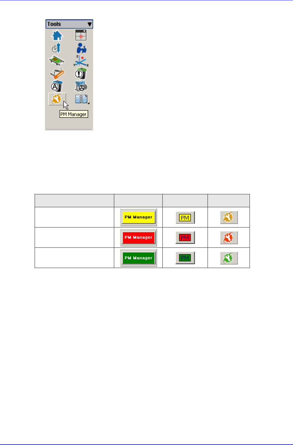 通过 PM Manager 执行按钮的颜色可确认 PM Manager 的当前状态。各按钮的颜色表示的状