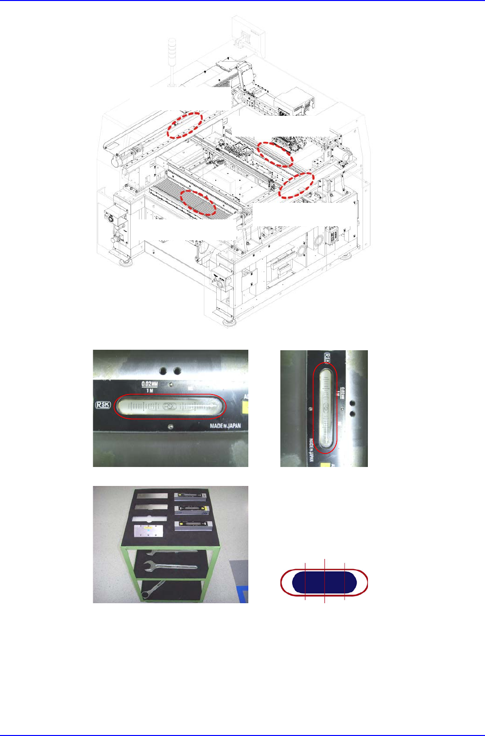 3. 用水平计量器将设备移动到使已设置好的基准设备和 传送装置(Conveyor)边界部分之间