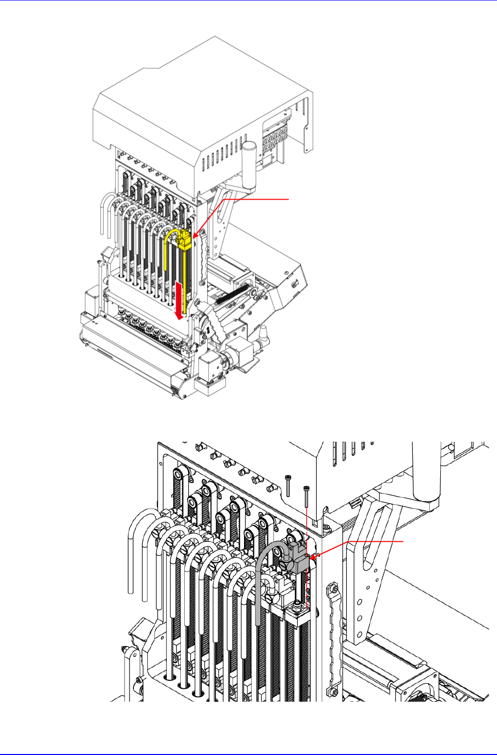 Advanced High Spee d F lexible Mounter 8 9. 利用扳手固定住轴杆的 扳手位置后,利用 另一个扳 手拧开 Lock Nut 后拆下。 10. 按照下列方向拆 下轴杆。 11. 更换新轴杆 ( Splin e ) 。 参考 轴杆 ( Spl ine ) 的 Par t N o. 是 MC13 -000124 。 扳手位置 Lock Nut Splin e