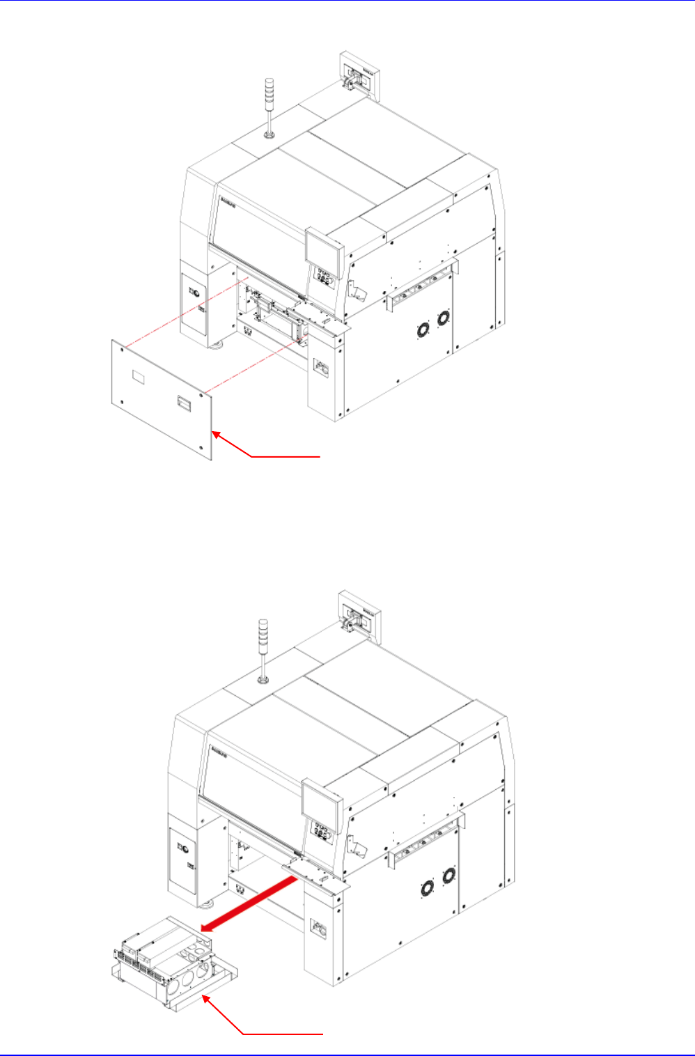 Advanced High Speed Flexible Mounter 4 2. 打开设备正面的盖 (C ove r) 。 3. 拆下连接在电源供应器 上的电缆 . 4. 拆下 P C Rack 后,十字型 (+) 螺丝刀拧开 Power Supply 的固定螺丝后拆下 Power Suppl y 。 Cove r Power Supply
