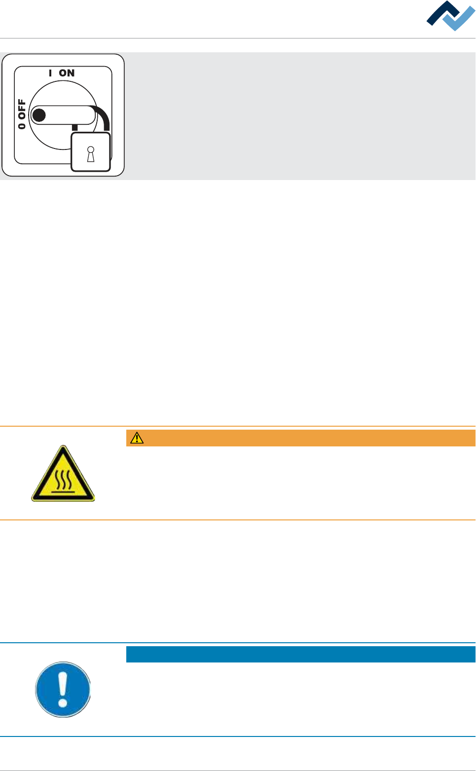 a) 将总开关旋转到OFF的位置并锁上安全锁定装置!