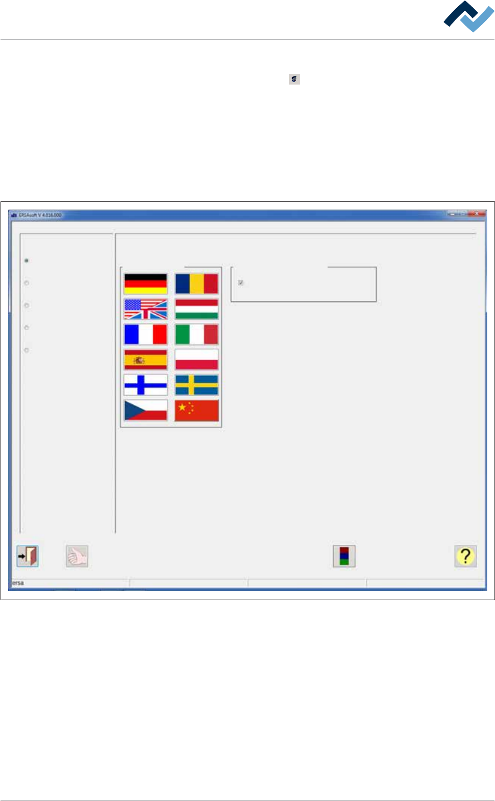 6|功能描述 6.5 [一般设置] 编辑页面 点击开始页面中顶部工具栏中的 按钮打开此页面,此页面还包含有以下几个 对话页面... – [配置] – [用户管理] – [文件路径] – [邮件设定] – [日志] 通过启动各自对应的单选按钮,可以打开这些对话页面。 配置 用户管理 文件路径 邮件设定 日志 语言 显示Ersasoft 全屏 常规设置 维护模式 如此范例所示,[常规设置] 页面中,已启动了[配置] 的按钮 Ersa G…