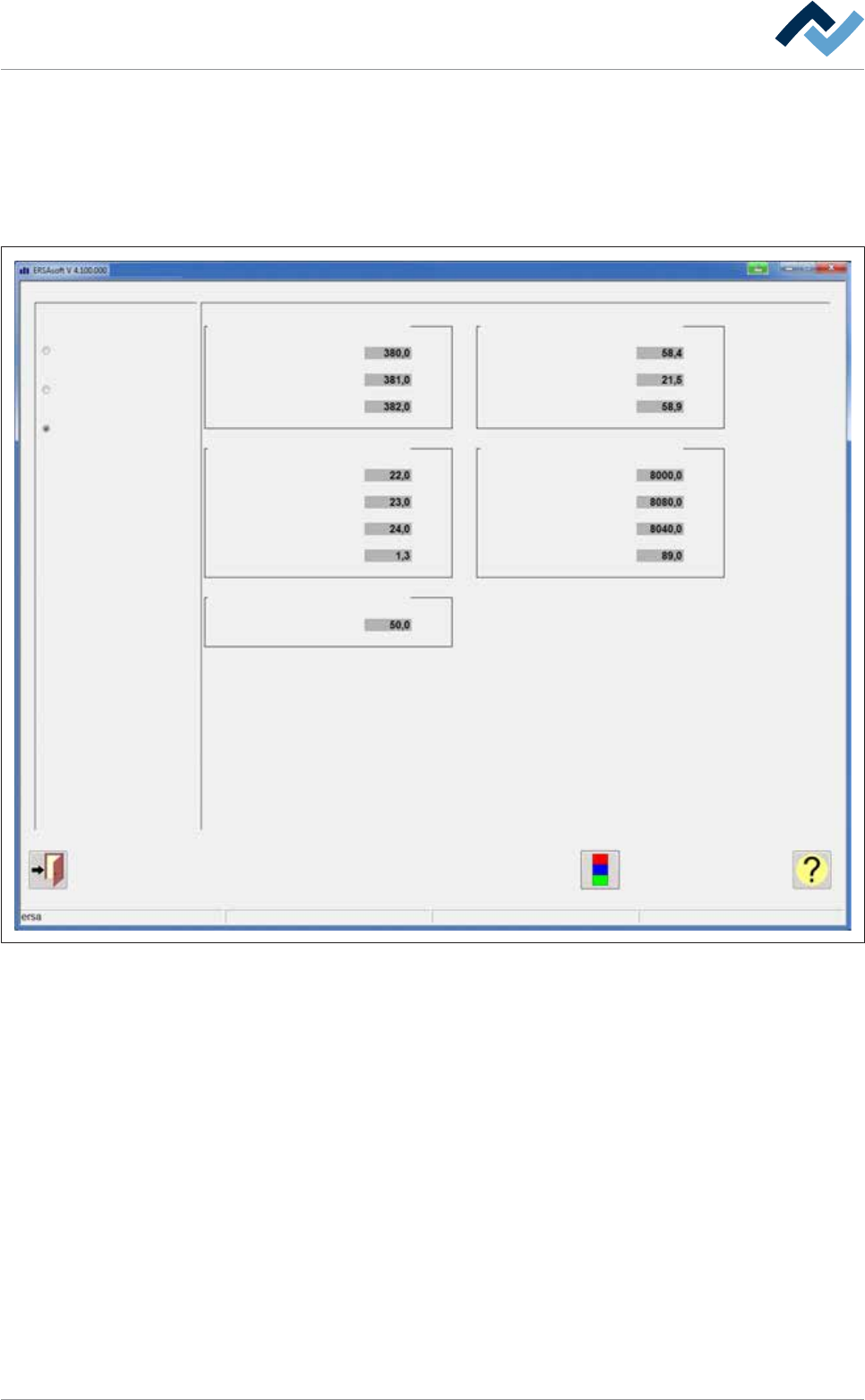 6|功能描述 6.14.6 电能计量 在该对话框中可以读取机器的电能数据。 ü 显示对话框 [电能计量]: a) 激活单选按钮 [电能计量]。 ð 将显示机器的能量数据: 焊接报告,运行数据 焊接报告 生产数据 维护模式 电能计量 电压有效值 工作 电源 电流有效值 频率 A相(L1) B相(L2) C相(L3) C相(L3) B相(L2) A相(L1) 零线 测量 工作 无功总电能 视在总电能 有功功率总 无功功率总 视在功率总 …