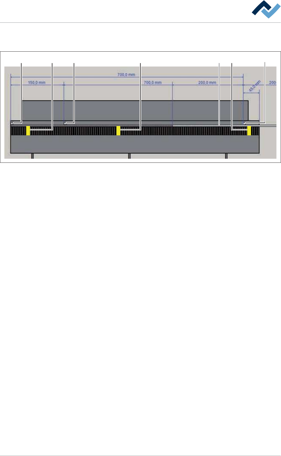 – 以 [mm] 说明传感器的距离,设置有蓝色尺寸线。