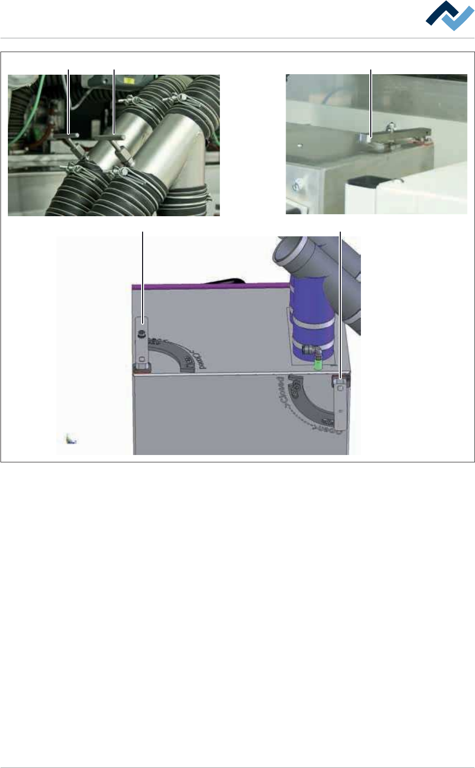 8|服务和保养 8.7.4 底部冷却区域:冷水热交换器的清洁 小心 材料损坏的风险! ü 热交换器翅片都非常敏感,容易变形。 这可以导致空气流的减少和冷却能 力的降低! a) 不得使用任何压缩空气和尖锐的物体来清洁机器! b) 用适当的工具将扭曲的翅片拉直,比如一个翅片梳。 c) 请阅读制造商的保养说明。 热交换器位于操作侧的机器出料口。 在打开机盖板(2)后可以进入它们: 每 一个冷却区域都有一个热交换器: 2 7 4 6 6 6…