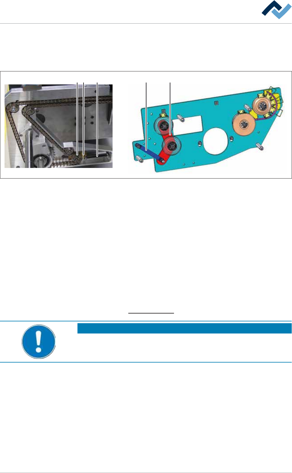 8|服务和保养 8.7.15 齿条,齿轮及滑动面 8.7.15.1 单轨输送系统 根据不同的机器设备,这里有几种不同的齿条、齿轮和滑动面。 – 在处理室内部 – 在机器进料区域 – 在机器出料区域 在机盖被打开后,可以进入到每个部件。 为此请阅读章节 打开和关闭机器盖 [ } 73] 。 小心 因高温气体、有害蒸汽和冷凝物而造成的人员损伤和材料损坏! ü 当打开处理室时,有害气体和冷凝物会跑出来! 遵守以下安全说明: a) 仔细阅…
