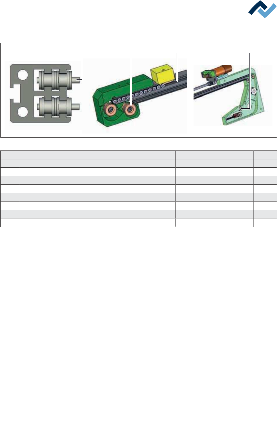 9|备件和易损件 9.14.6 Dual Speed 驱动器 1 1 4 2, 3 2, 3 4 图238: EM116-82-00a 项号 名称 产品编号 A B 1 Positioning drive with integrated electronic module 292886 x 2 Chain 9.525 x 5.72, 4,5 m length 6KE06B-1G67NS x 3 Chain joint 6KES06…
