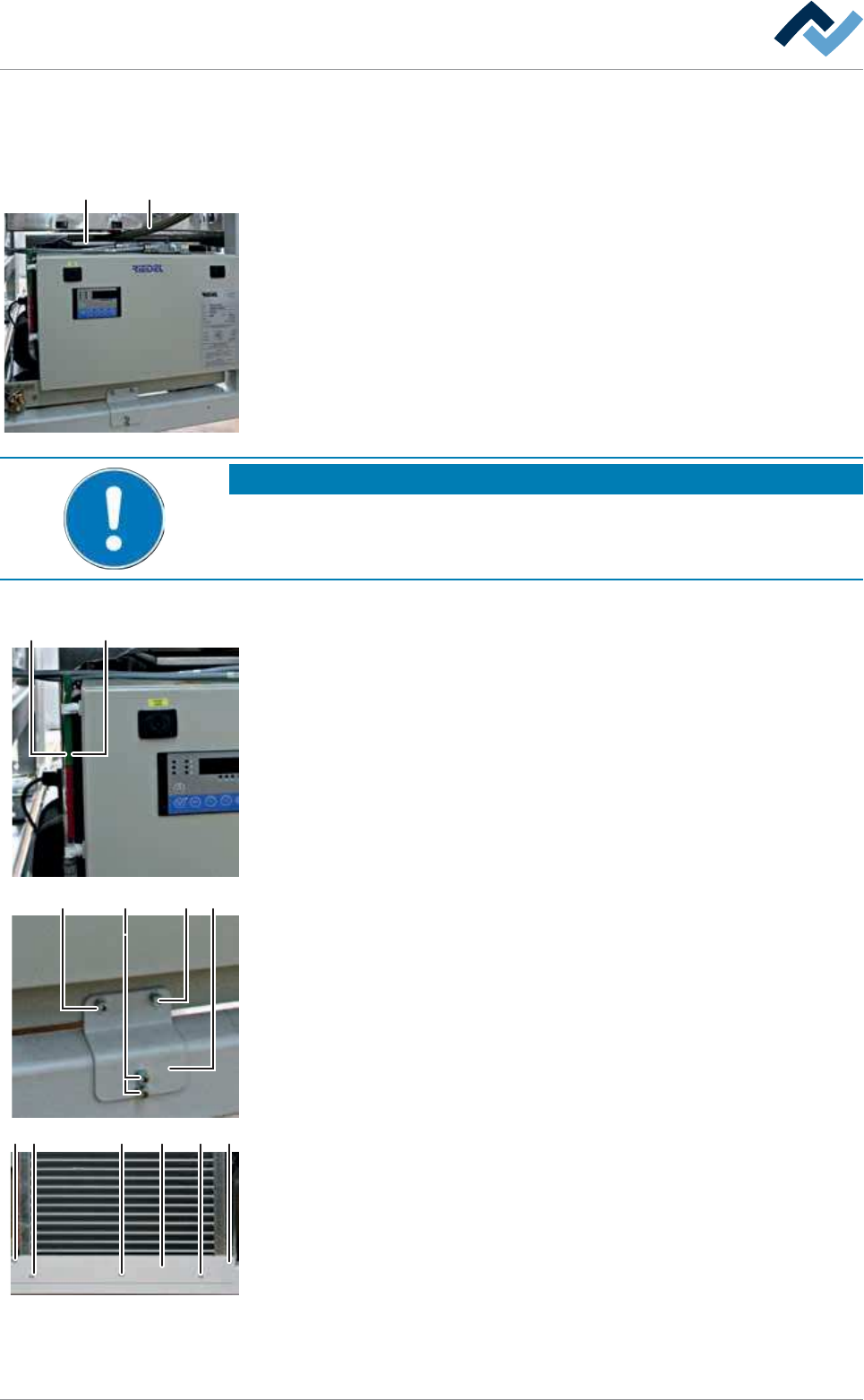 4|运输,安装,储存,清理 4.9 准备操作时需要的冷却单元 填充存储箱 1 2 ü 冷却单元位于机器的出料部分。 a) 拆除机器正面冷却单元的罩。 b) 提起冷却单元的盖子(1) 并将软管插入存储箱中。 提示 有关水的质量的重要注意事项 水质量的规格要求可以在制造商的操作手册中找到。 水中必须含有25% 的 Antifrogen N 防冻液Art. No. 6ZT00167。 3 3 ü 填充容器: a) 填充储存箱直到到达填充液…