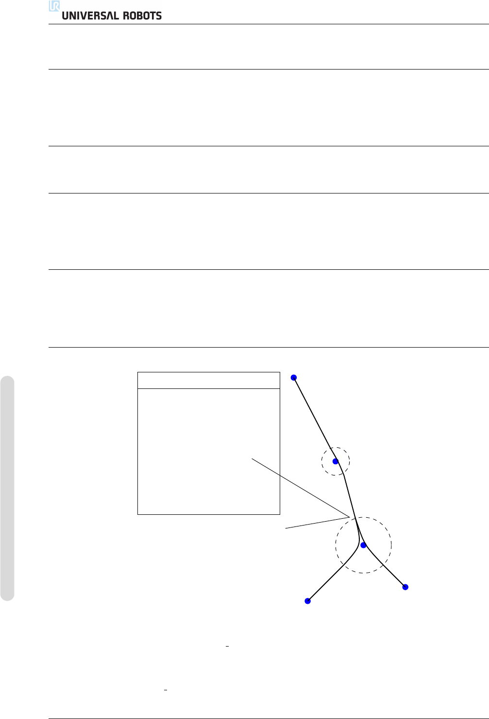 臂不会停在该点。混合区不能重叠,因此为当前路点设置的交融半径不能与上一路