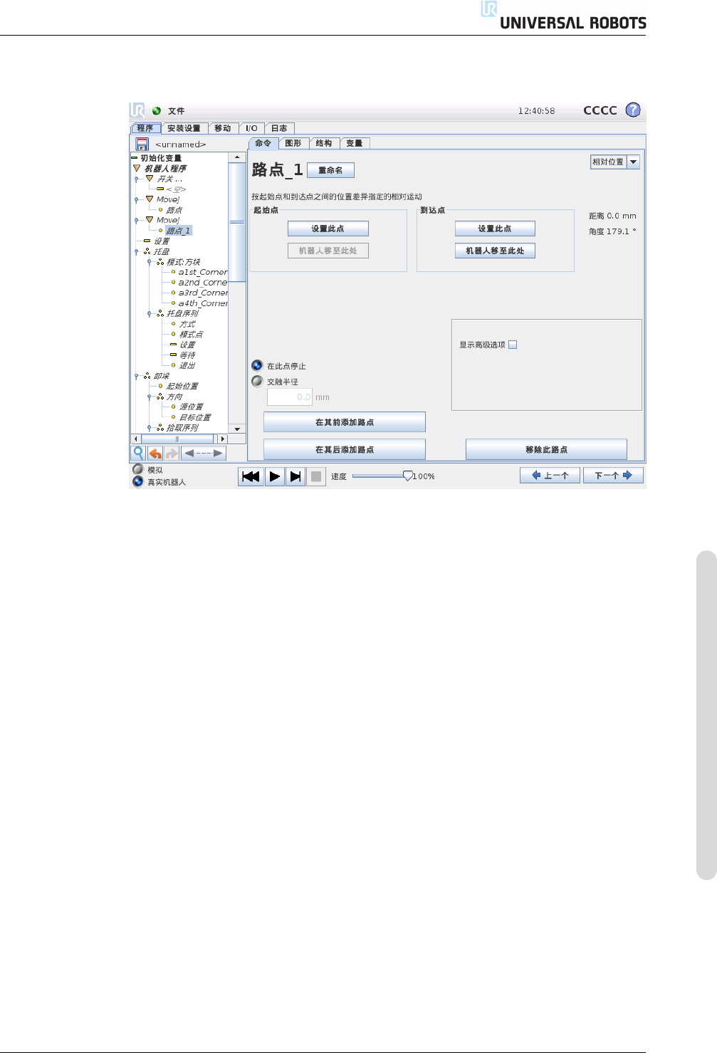 置。固定位置路点通过将机器人手臂实际移至相应位置来确定。