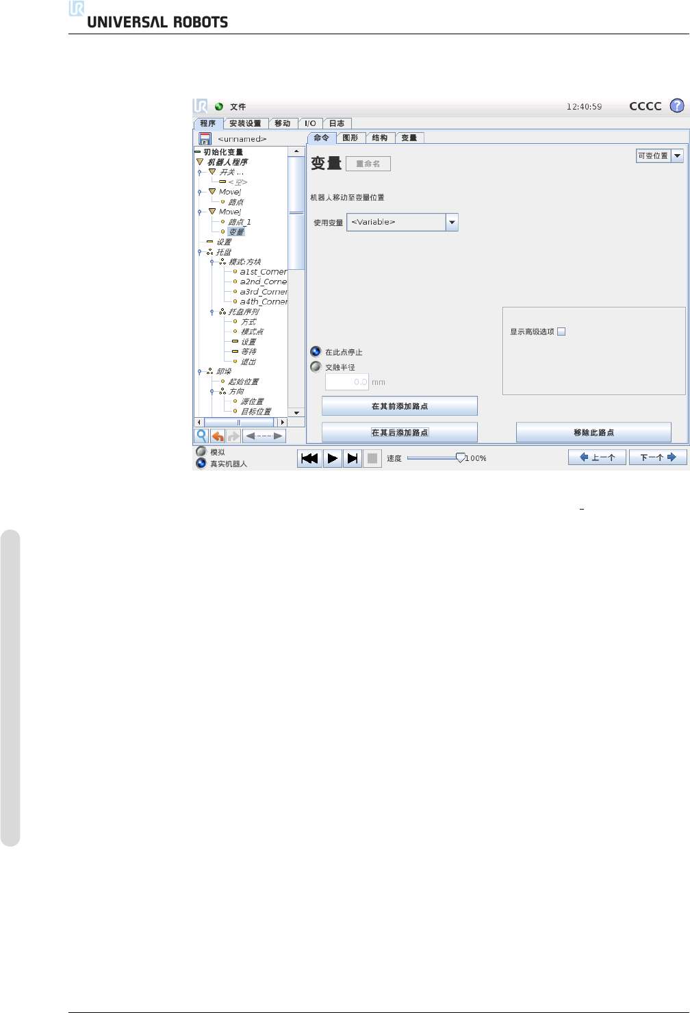 可变路点系指该路点的位置由变量给定,在此情况下,calculated pos 即为变量。变