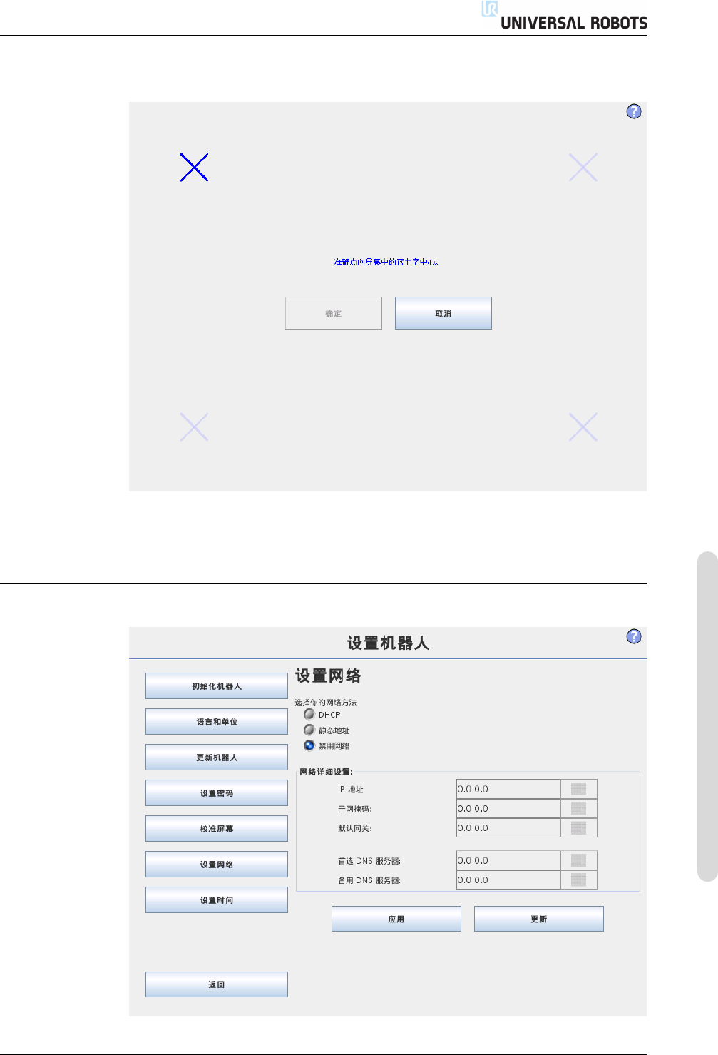 用于设置以太网网络的操作面板。运行基本的机器人功能无需连接以太网,且默认