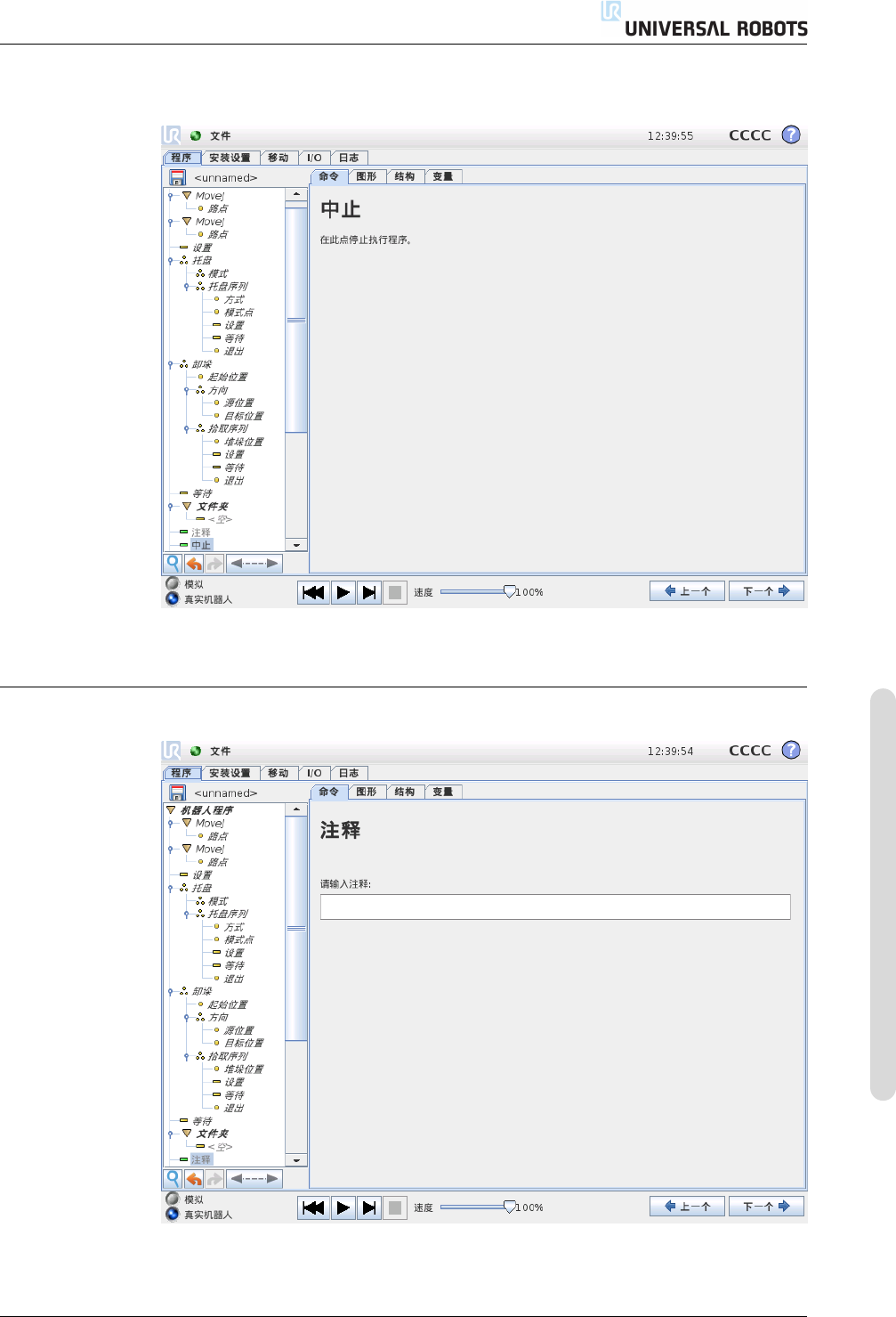 14.15 命令:循环 14.14 命令:文件夹 “ 文件 夹 ” 命 令用 于 整理 程 序 并给 具 体的 程 序部 分 加 注标 签, 以使 程 序树 清 晰 明了, 程序更易于读取和浏览。 文件夹本身不执行任何操作。 14.15 命令:循环 CB3 I I-68 版本 3.2 (rev. 18629) . . 版权所有 © 2009-2015 Universal Rob ots A/S 。保留所有权利。