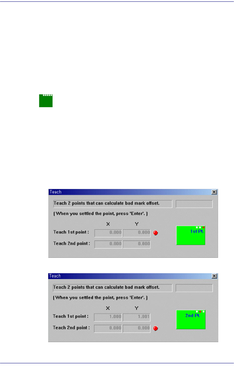 示教Bad Mark偏移。 此按钮示教Bad Mark的偏移量。按下此按钮时依次显