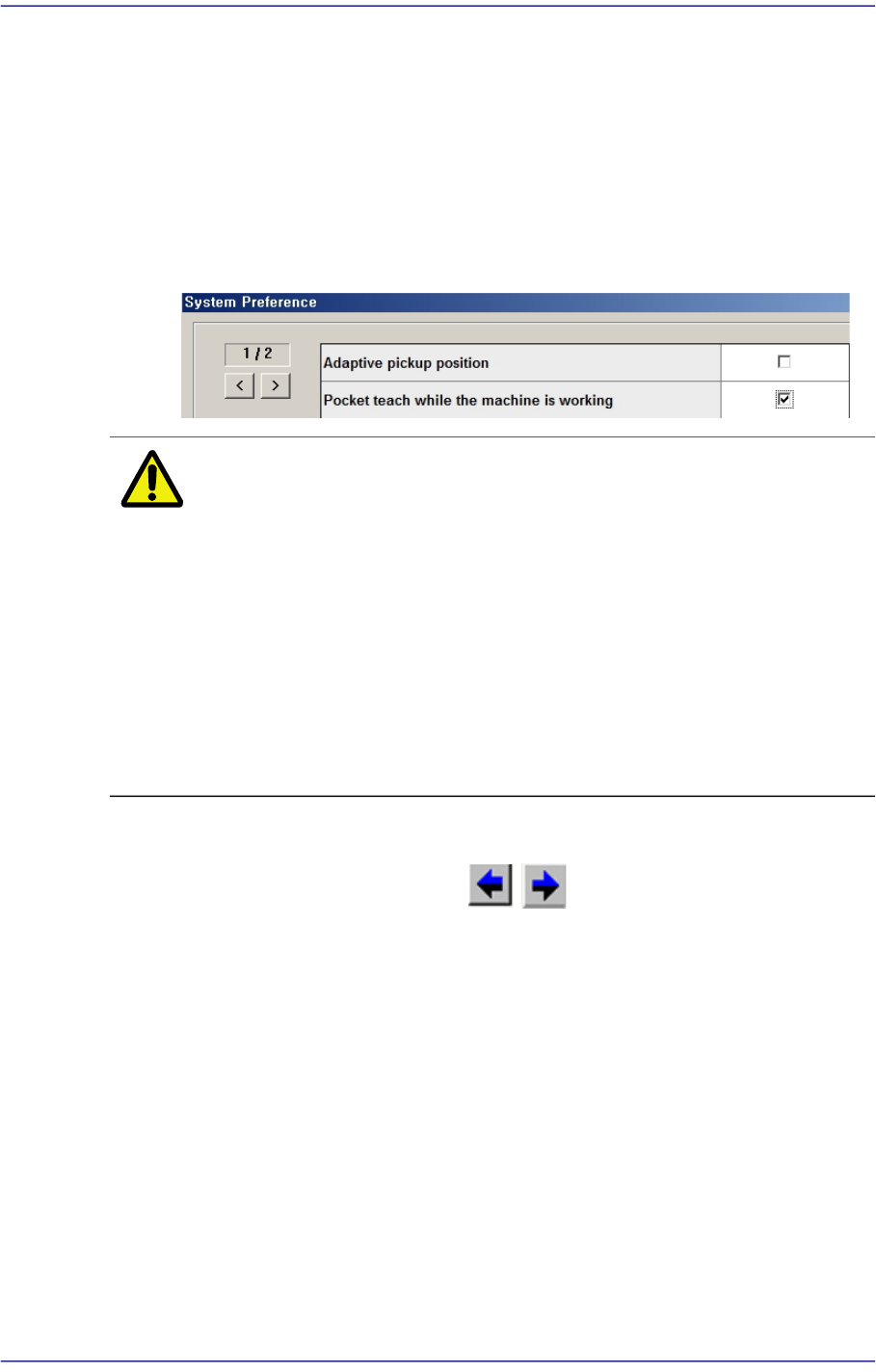 为实际适用Pocket Teach,应在System Setup菜单设置Preference辅助菜单的
