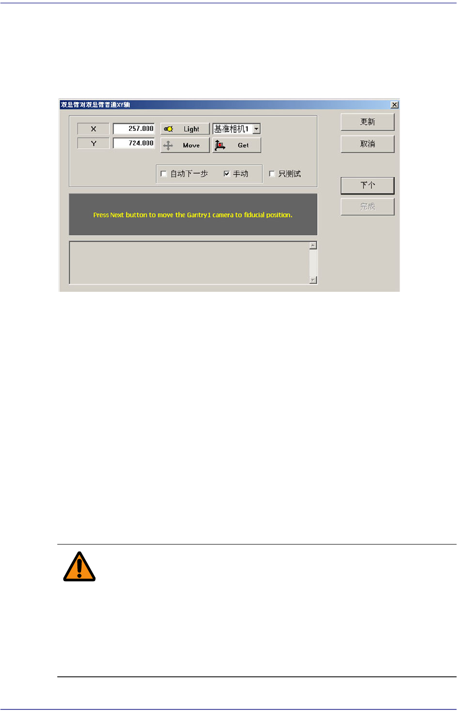 选择此选择框后点击<下个>按钮自动执行各Gantry间坐标系一致化的过程。