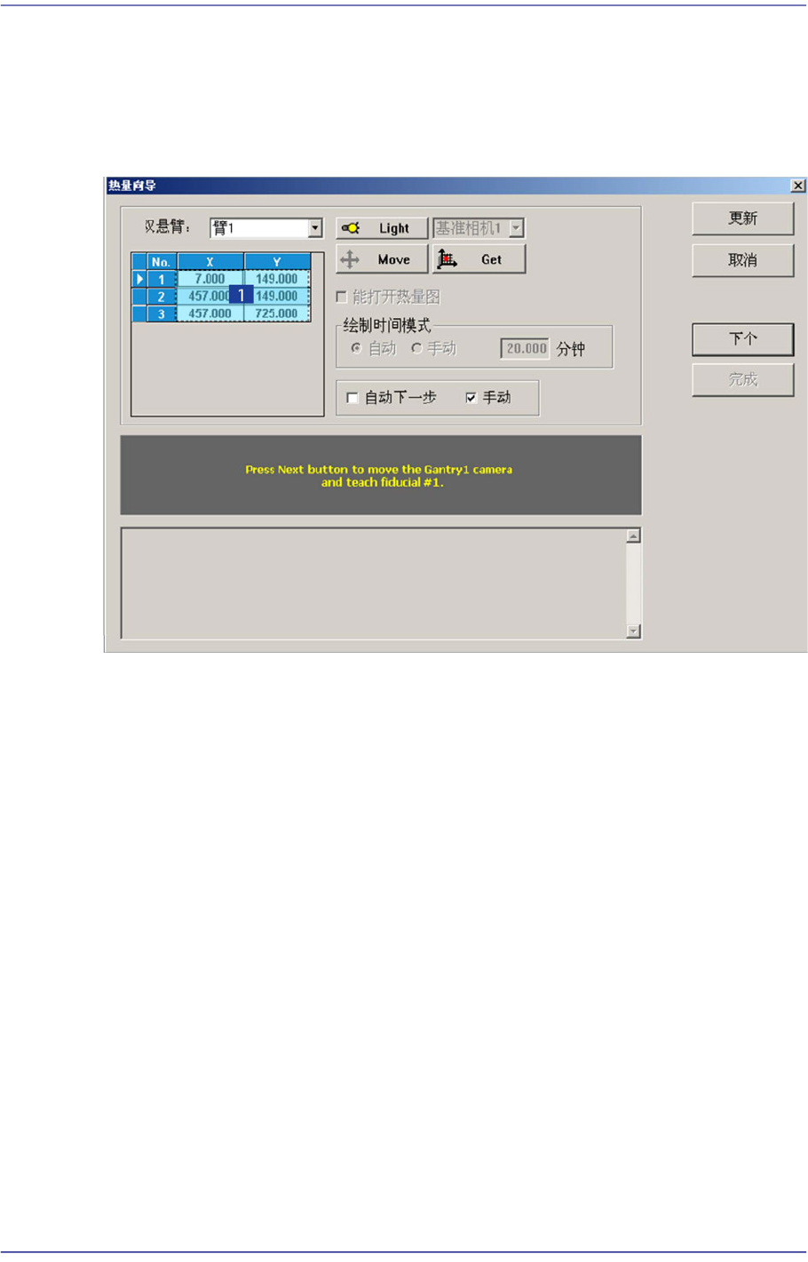 把相应Gantry的基准相机移动到在Grid领域中选择的Fiducial Mark位置。