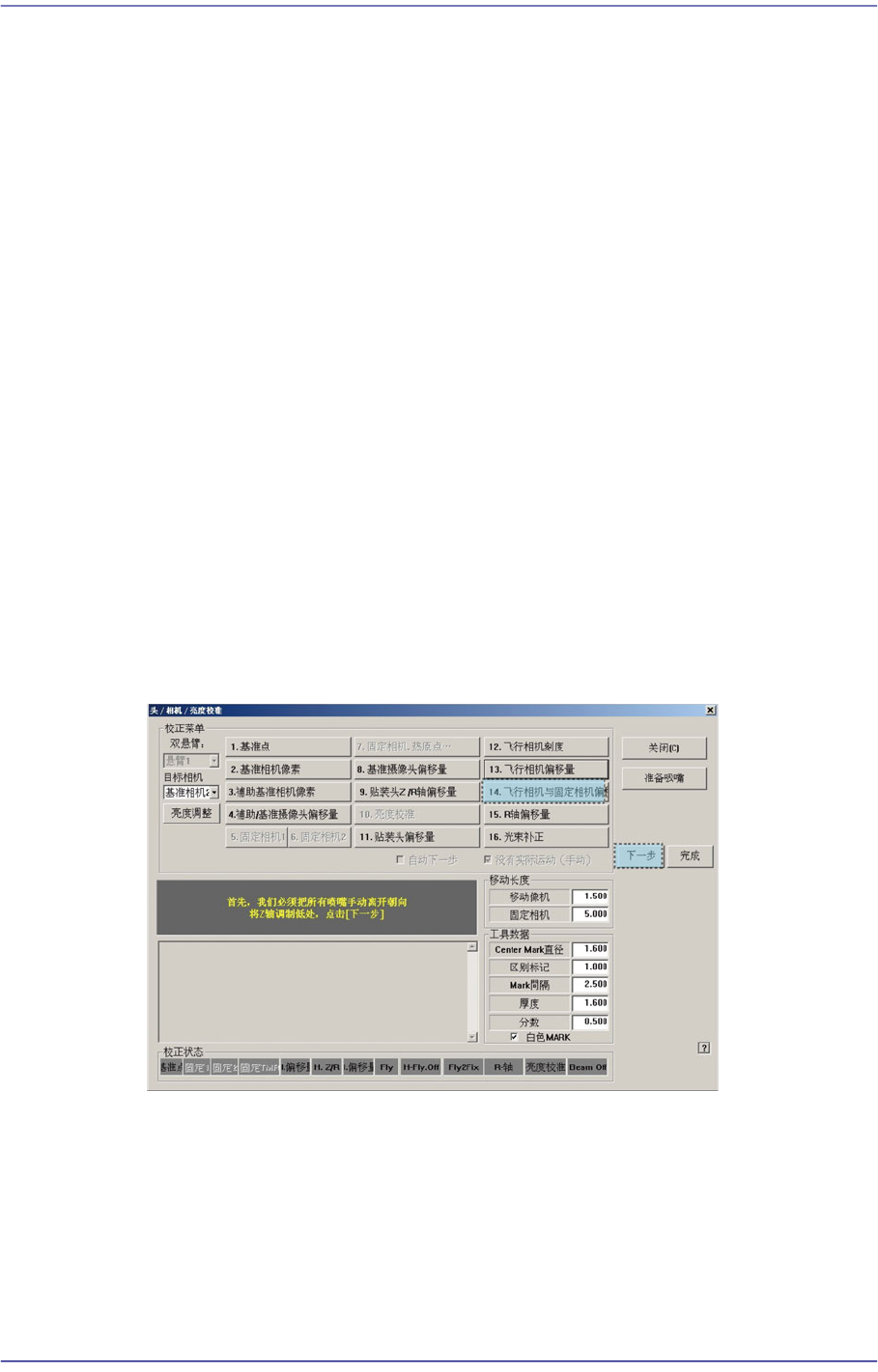 选择<14. Fly to Fix Offset>按钮则显示”首先,我们必须把所有吸嘴手动离开朝