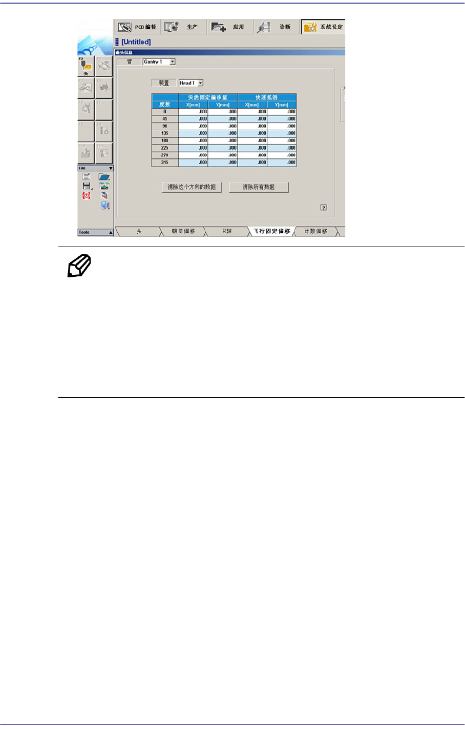 选择<15. R-Axis Offset>按钮则显示”首先,我们必须把所有吸嘴手动离开朝