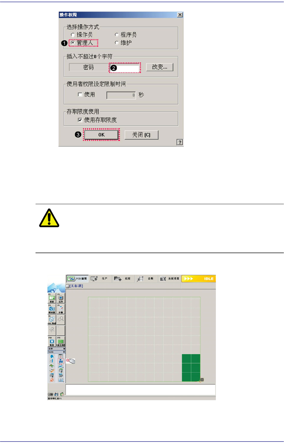 注 意 请勿与其他用户共享程序员方式及管理员方式的密码。 无权限