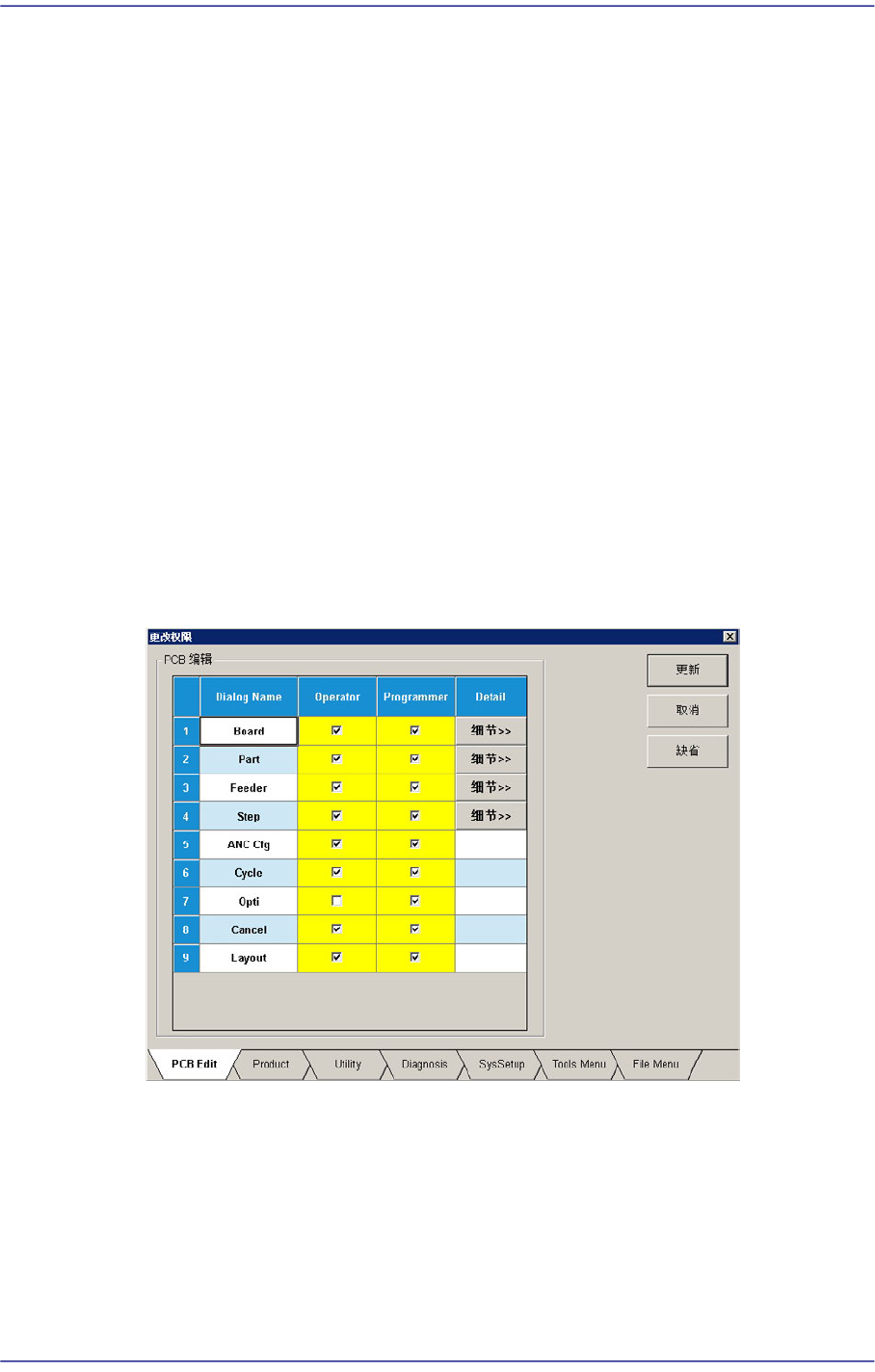 针对<PCB Edit>菜单的子菜单设置其权限。
