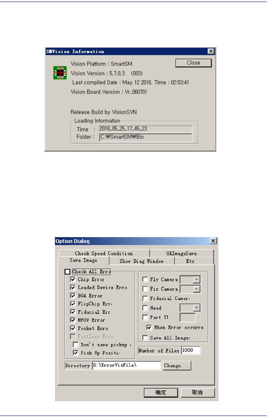 4-5 Tools 简化操作 (shortcut) 菜单 < Check All Errors> 选择框领域 可指定部件类型保存相应部件的错误, 也可指 定摄象机利用相应摄象机 仅限识别的部件保存错误。 <Save All Image> 领域 文件的最大保存个数可以在 ‘Number of files’ 设定。 最大保存可能个数为 5000 个。 <Directory> 领域 保存文件的位…