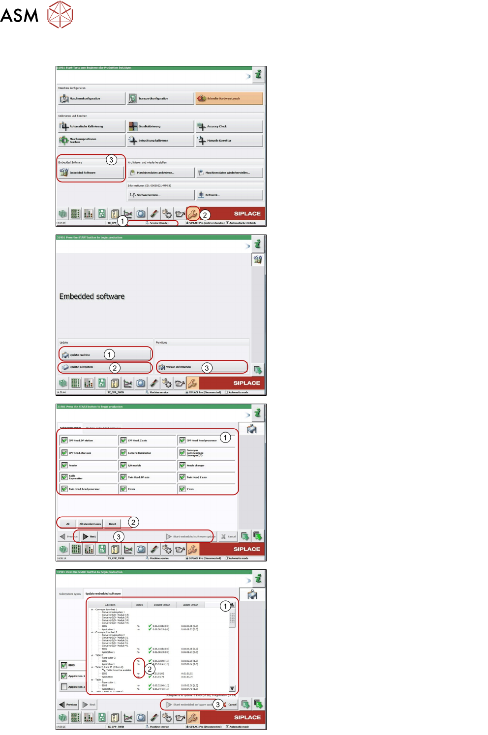 9 Station Software Overviews 9.8 Embedded software (eSW) download 152 Technical Training FSE SIPLACE TX-Series 01/2018 9.8 Embedded software (eSW) download 1. The function Embedded software Down- load can be performed wi…