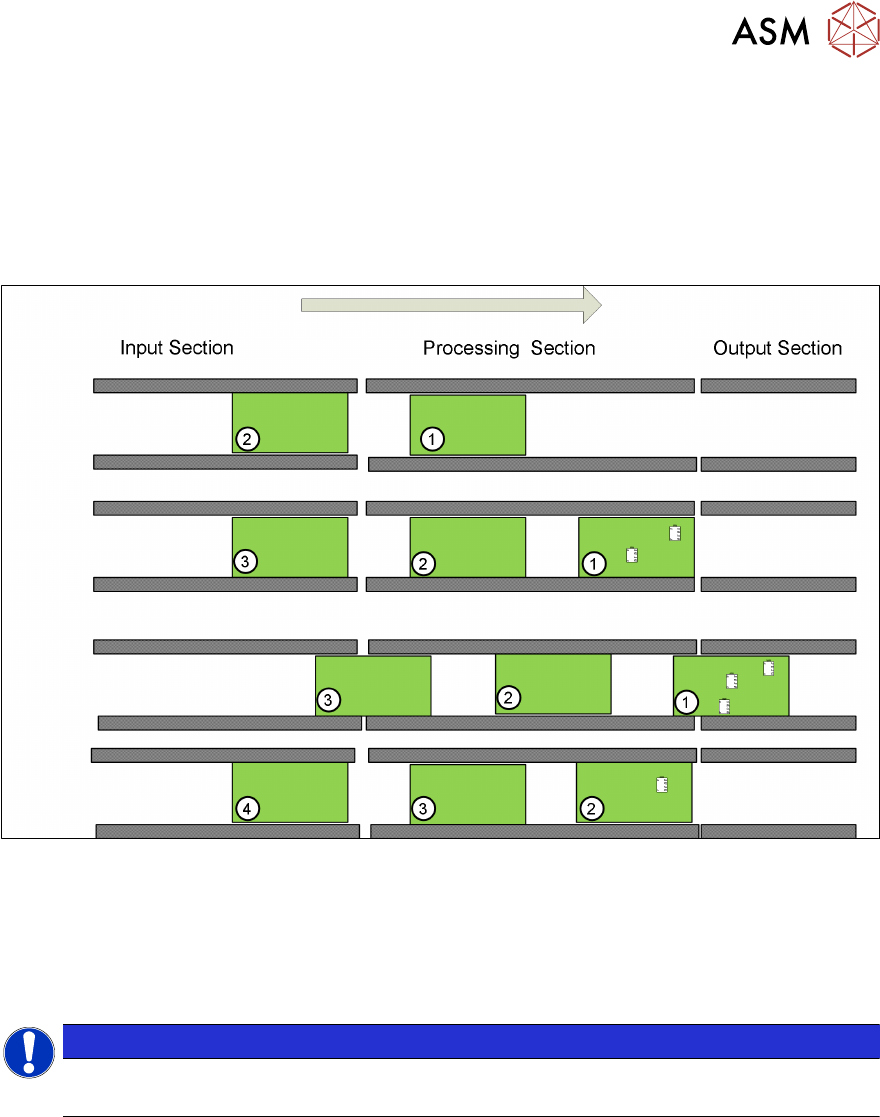 When PCB 1 leaves the processing area PCB 2 moves to the stopper and will be processed, at the