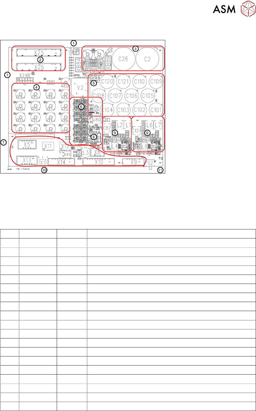7 Power Supply 7.5 Overview of Fuse board FD:A1 Technical Training FSE SIPLACE TX-Series 01/2018 97 7.5 Overview of Fuse board FD:A1 1. Connector to CSB unit 5. 42V head buffer caps 9. Head Boost converter in- put 42VDC …