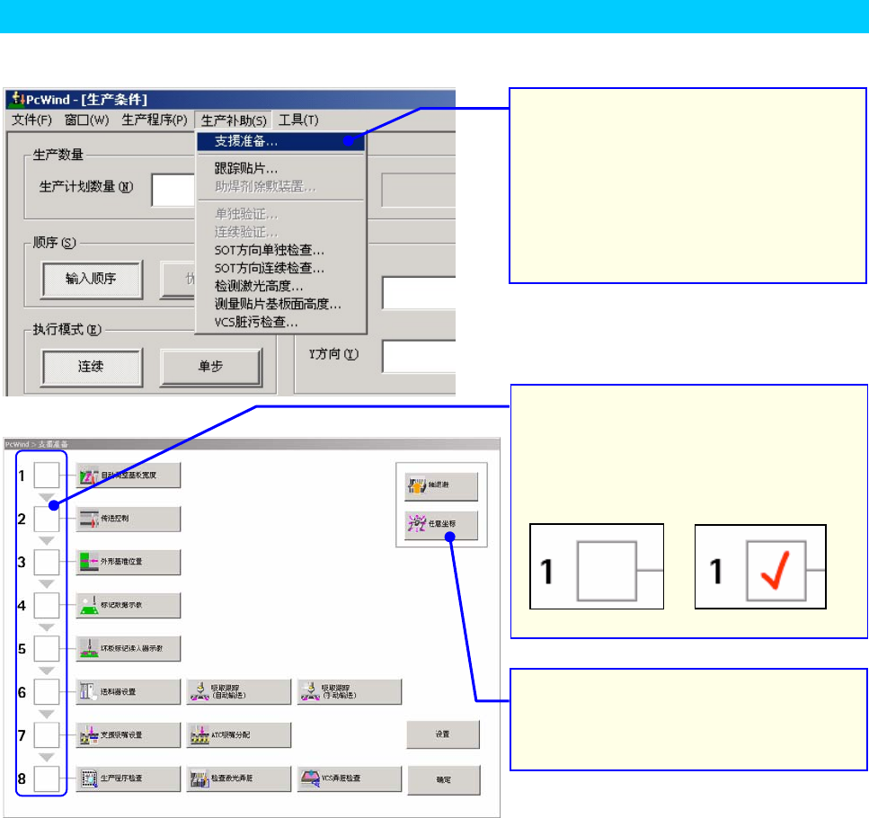 可以使用「支援准备」功能,边确认步骤,边进行生产准备。