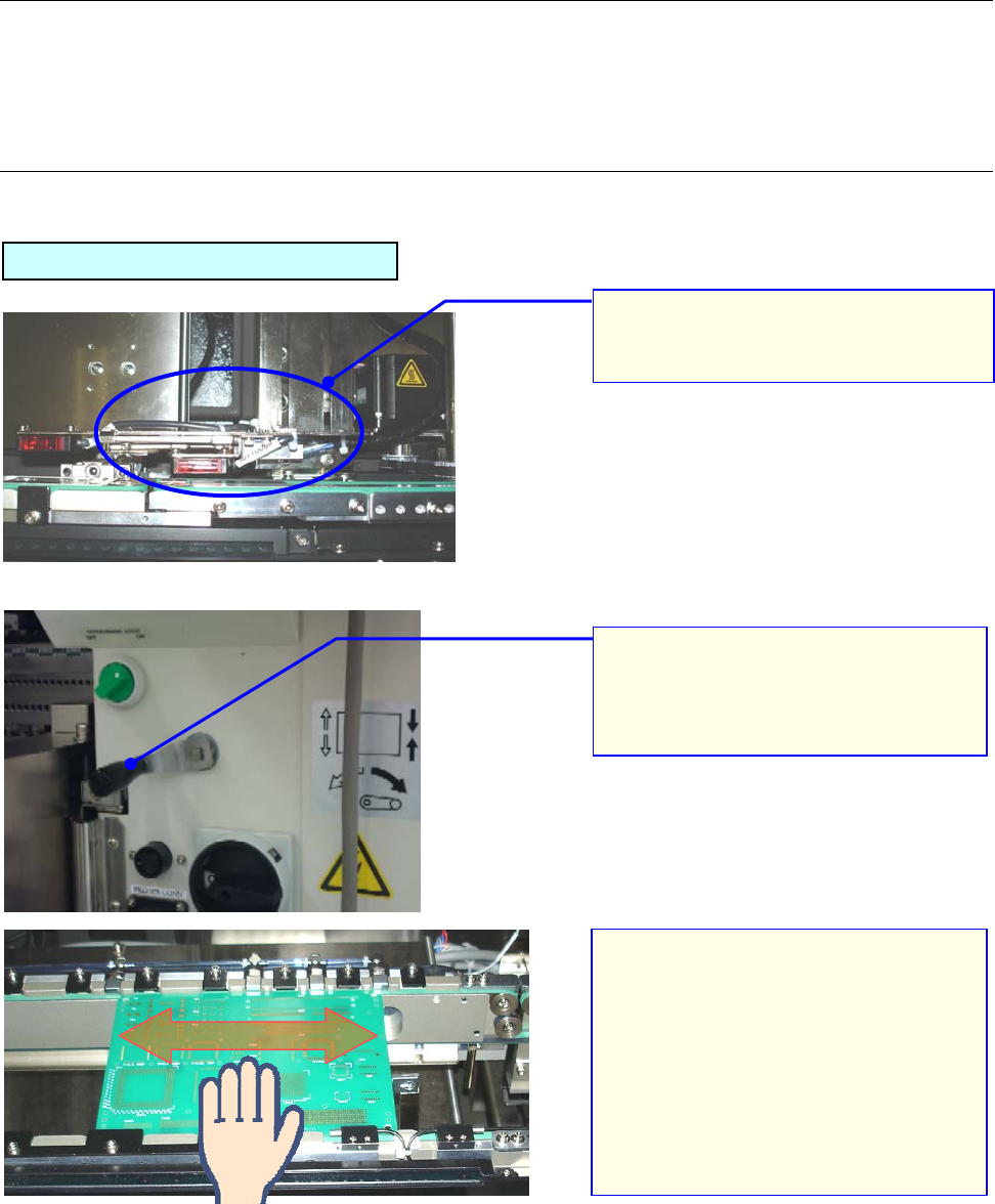 将传送轨道宽度按照生产中使用的基板尺寸进行调整。以下对手动调整轨道宽度的方法,及选项的“自