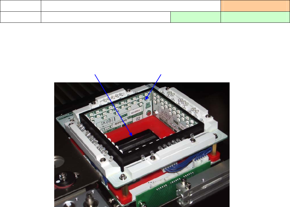 第 1 部 基本編 第 3 章 维护 清扫部位 4-3-14 VCS单元 实施频度 :每周 清扫内容 清扫 VCS 上面 使用工具:抹布 推荐溶剂 :IPA 1) 检查 VCS 上面(窗口和 LED)有无灰尘等异物,若有脏污,请用干抹布或纱布擦干净。 把 VCS 上面的脏污擦拭干净,LED 的灰尘用气枪吹干净。 窗口 LED 4-26