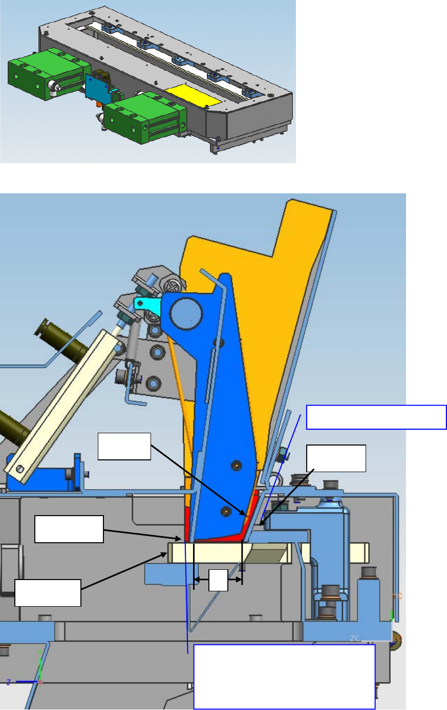 3 请打开切带机组合件的上导轨,以目视确认切带机的刀刃已关闭(如断开装置主体的电源,切带