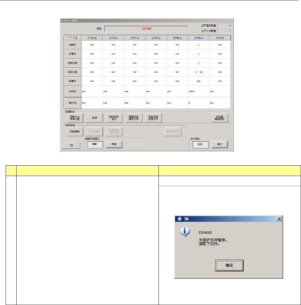 5-10 5-9 生产时的其他错误 其他的各种错误处理方法请参见「使用说明书第 2-15 章 生产时的错误处理/暂停」 。 在此,主要针对 4 种错误,记述其不同发生时间段的处理方法。 5-9-1 芯片站立错误 在吸取元件的元件高度与程序编辑的数据值不同时发生。 发生错误的时间段 确认和处理 请检查安装元件的送料器是否挂错。 元件补给后 随即发生 请进行再示教,检查元件吸取位置有 无问题。 请重新检查元件数据的元件高度。 正常的生产中 …