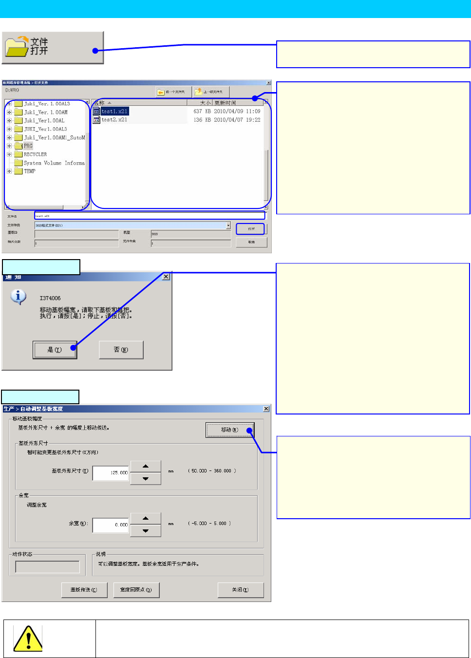 在自动调整基板宽度对话框中选择「移动」后,传送动作即开始。