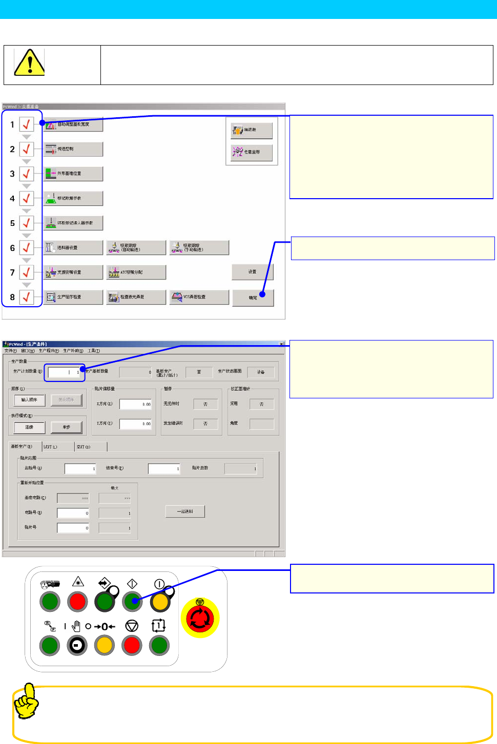 元件核对工作的情况下按下开始开关时,会显示警告画面,不能开始生产