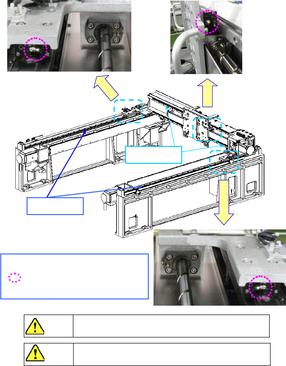 第 1 部 基本編 第 3 章 维护 <XL 基板规格 > ※注油位置 圆圈部位 LM 导轨 注油孔 Y轴直动单元 X轴直动单元 危 险 为防止突然起动造成事故,请切断电源后进行维护作业。 注 意 LM 导轨和滚珠丝杠的黄油是不同的。请不要混合使用。 4-31