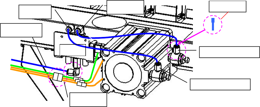5) 请拔出切带机组合件中气缸速度控制器(空气供给:OPEN)侧的空气管子,插入塞子(Φ6