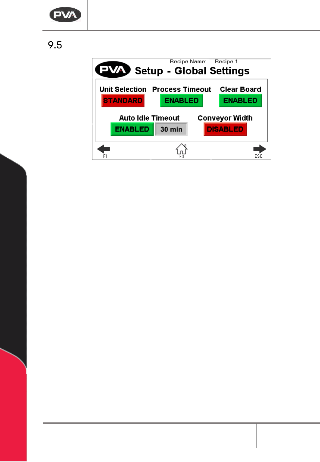 5. Press Conveyor Width to enable/disable the conveyor width move to current recipe