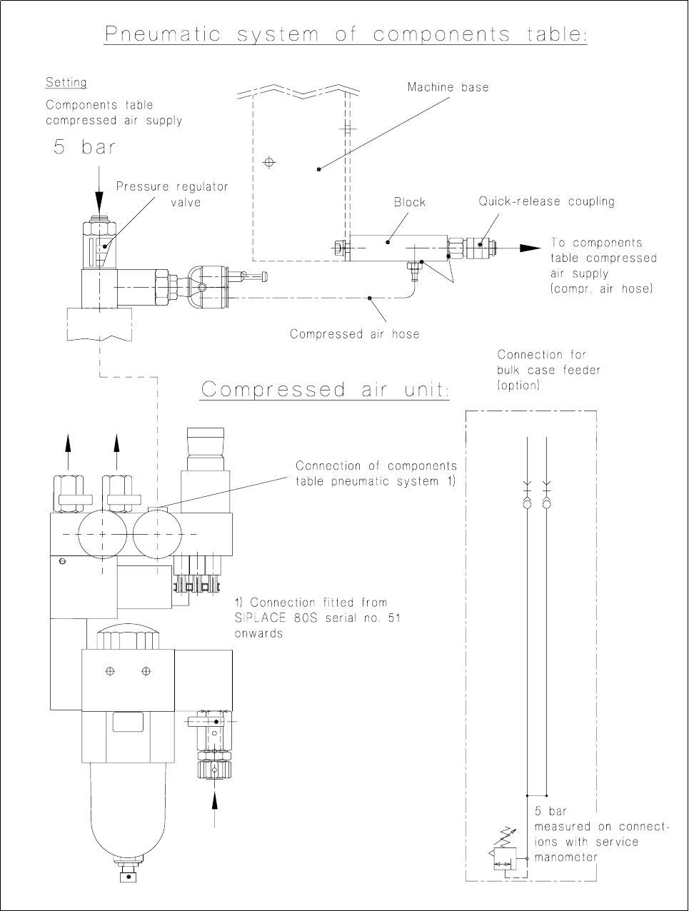 ● Unscrew the mounting of the components table compressed air supply to the components table