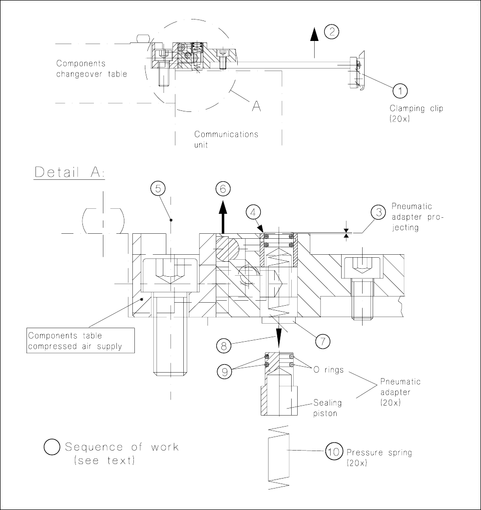 Fig. 7.7.2 Components table compressed air supply: checking and replacing o-rings and pressure springs of the pneumatic adapters