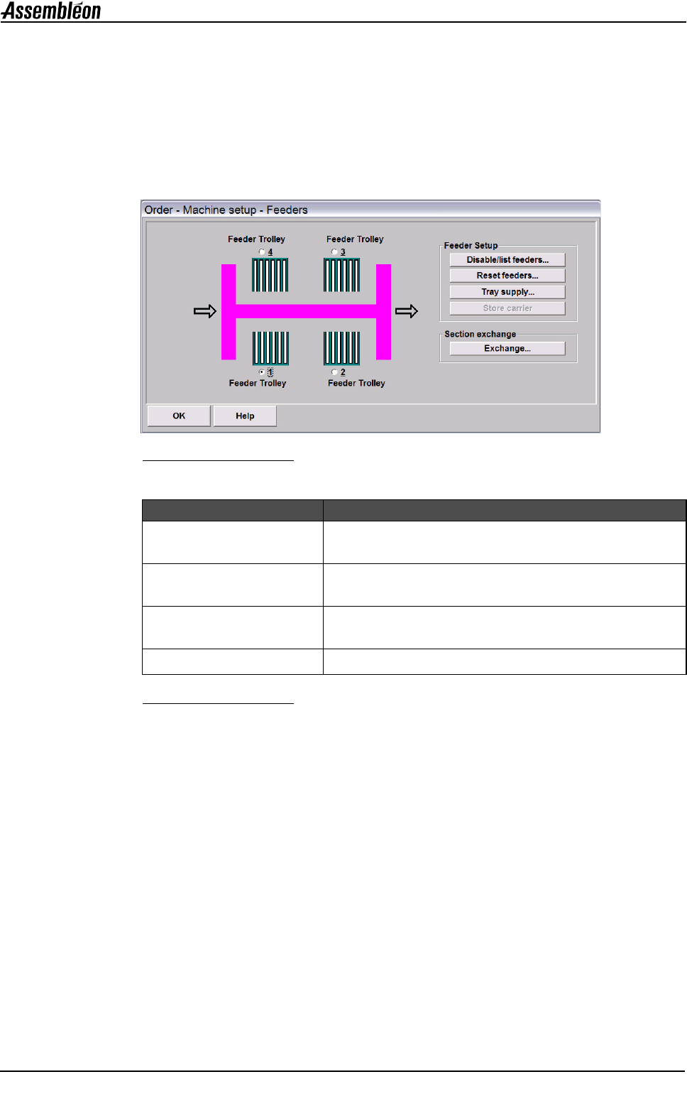 用户可以检查、输入或更改机器的供料器设置。可以定义托盘的第一个取件位